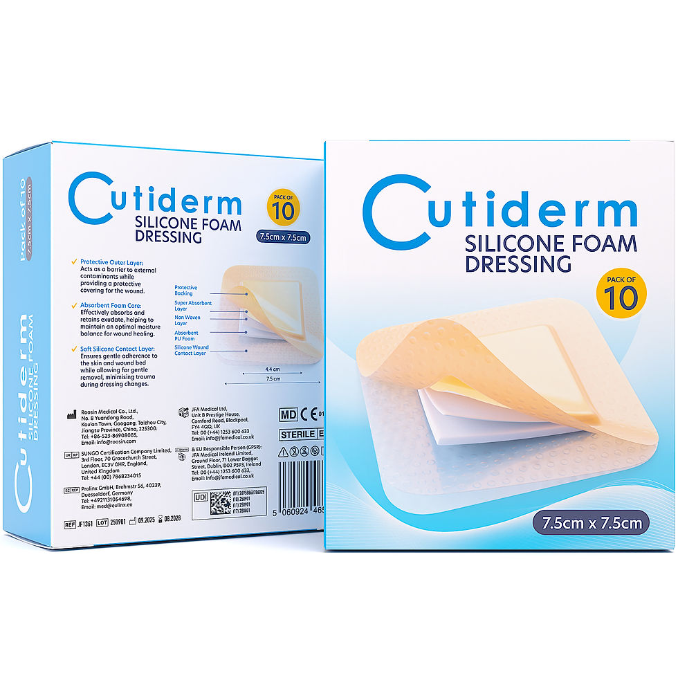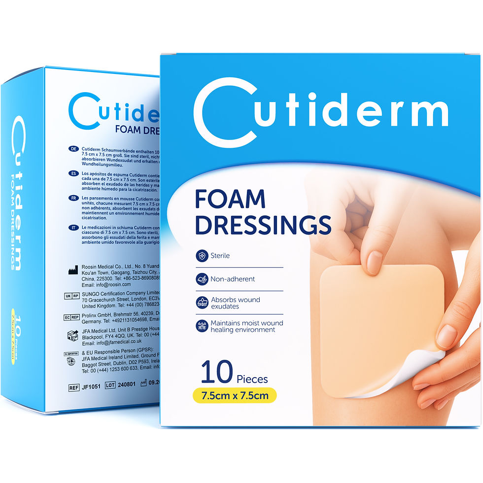 Our foam dressing range includes non adhesive sterile foam dressings for effective absorption and easy dressing changes, as well as silicone foam comfort dressings with a light border for gentle fixation. Available in various sizes, they help protect wounds while maintaining a moist healing environment.